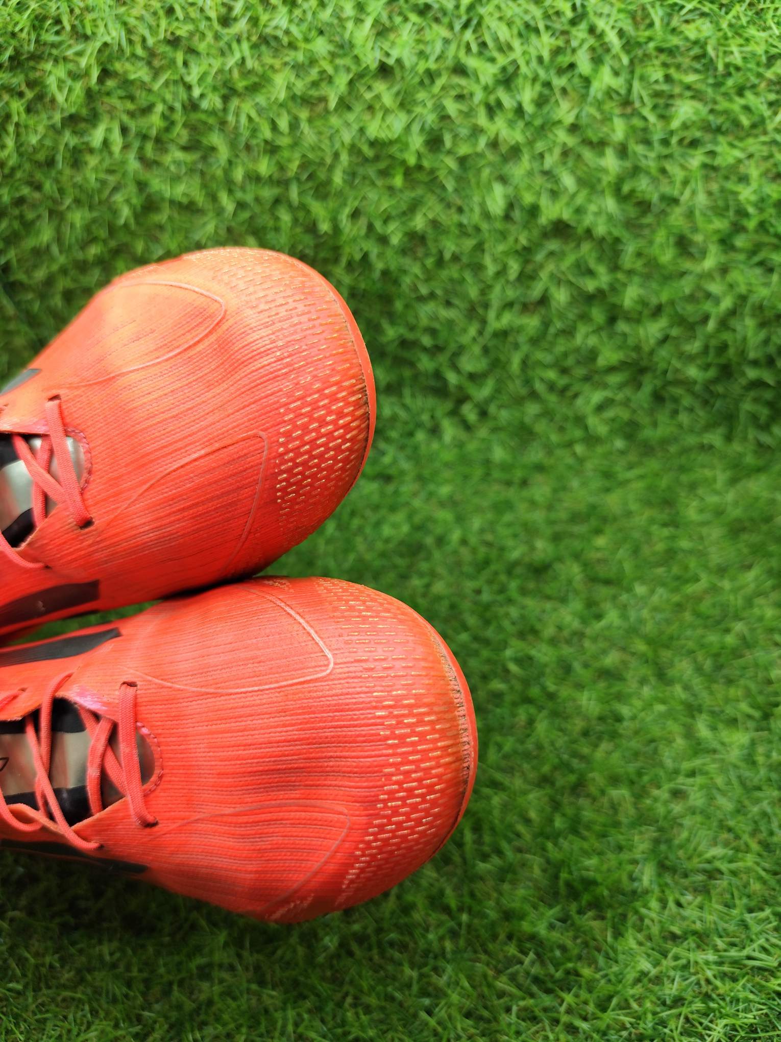 Buty używane w dobrym stanie, minimalnie naprawione, w pełni sprawne. Mogą występować lekkie ślady użytkowania typowe dla obuwia piłkarskiego, ale nie posiadają dziur, uszkodzeń ani rozklejeń.