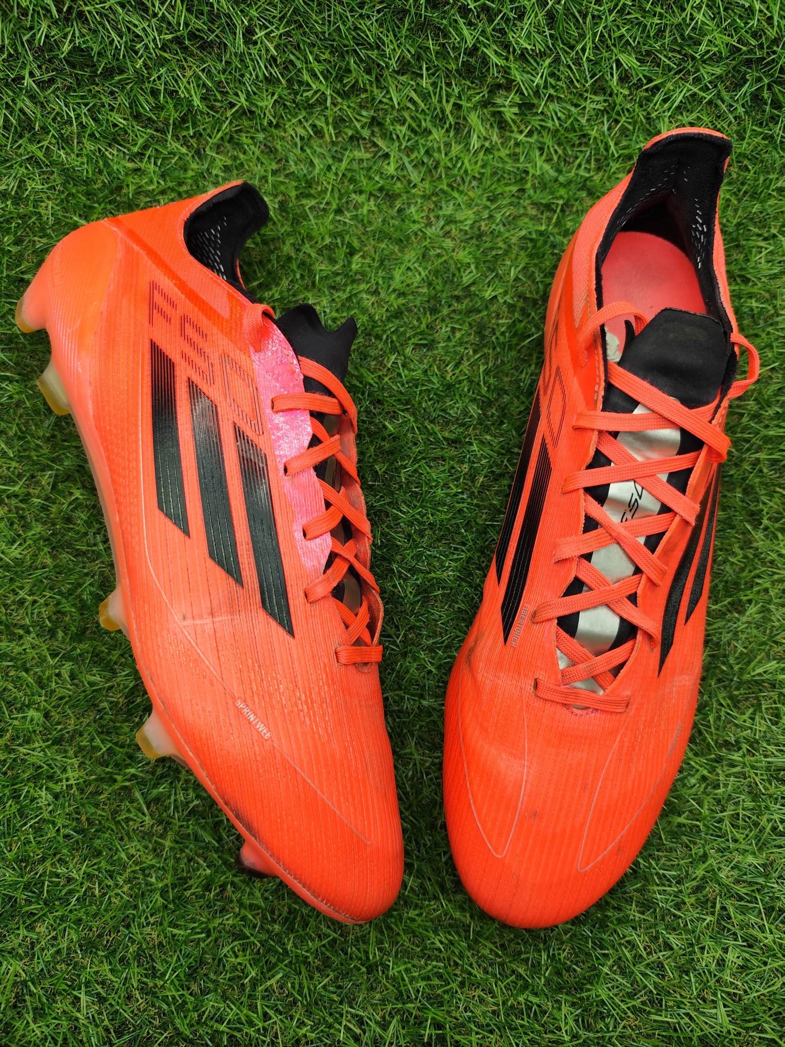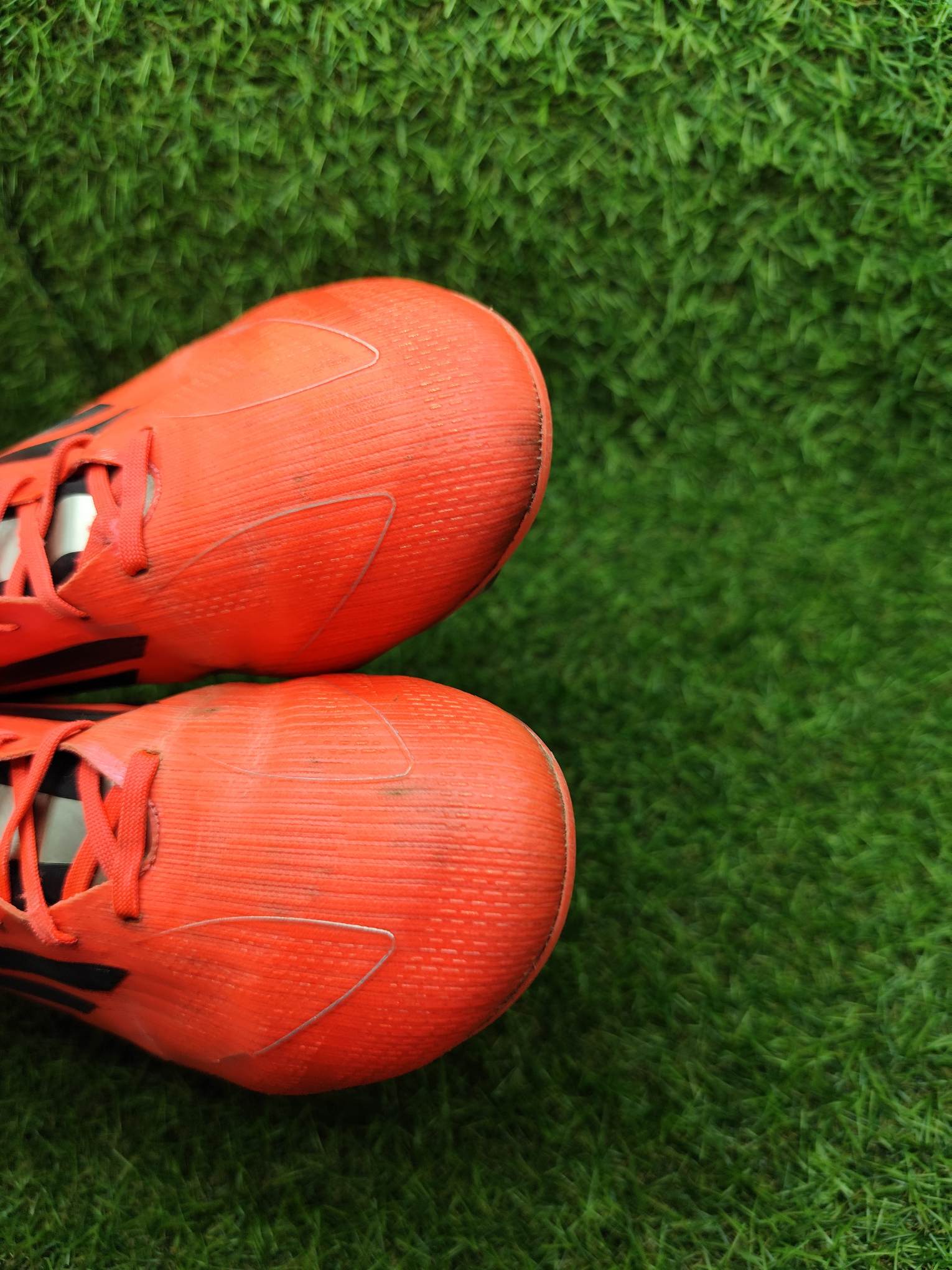 Buty używane w dobrym stanie, minimalnie naprawione, w pełni sprawne. Mogą występować lekkie ślady użytkowania typowe dla obuwia piłkarskiego, ale nie posiadają dziur, uszkodzeń ani rozklejeń.