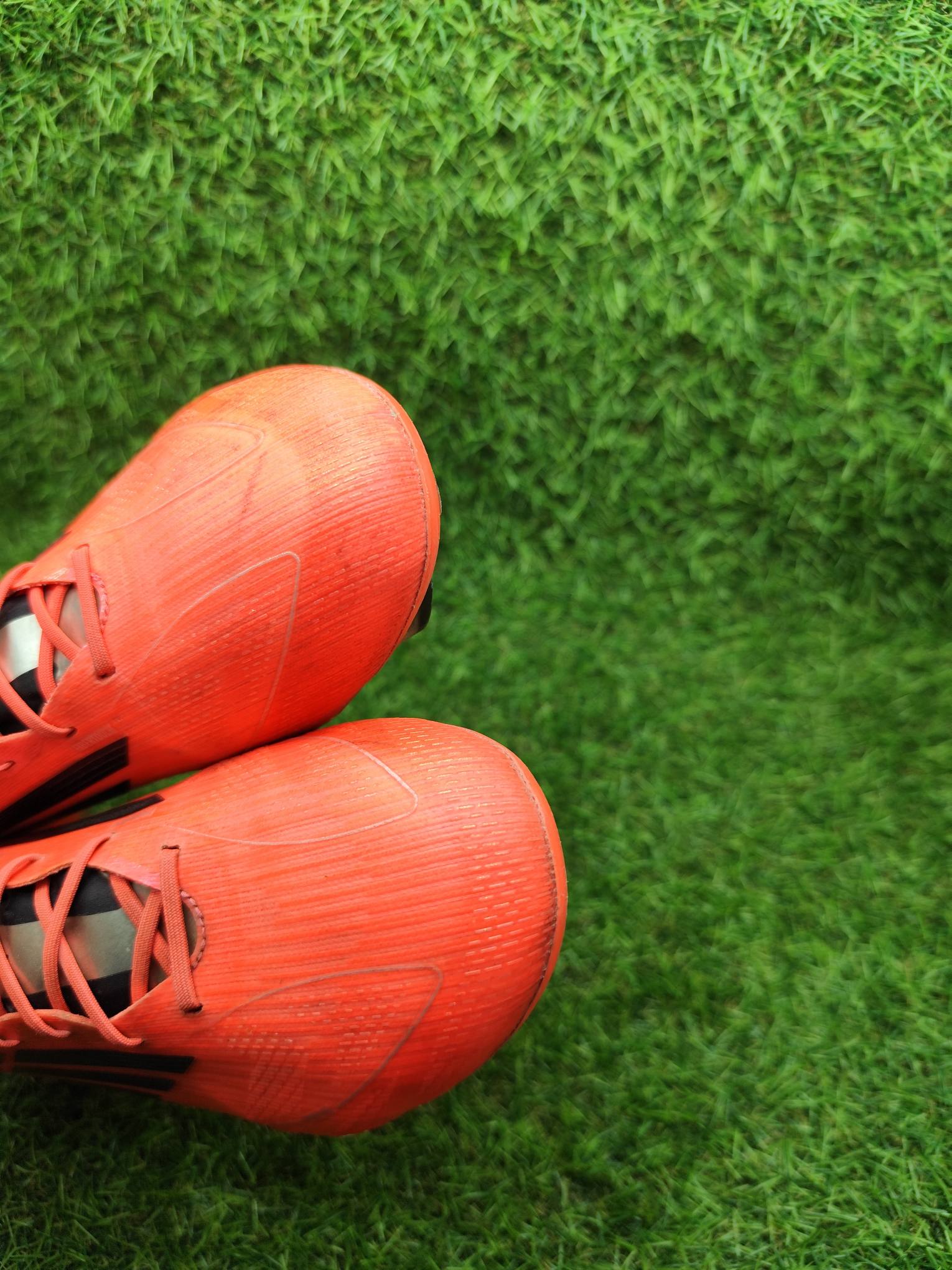 Buty używane w dobrym stanie, minimalnie naprawione, w pełni sprawne. Mogą występować lekkie ślady użytkowania typowe dla obuwia piłkarskiego, ale nie posiadają dziur, uszkodzeń ani rozklejeń.
