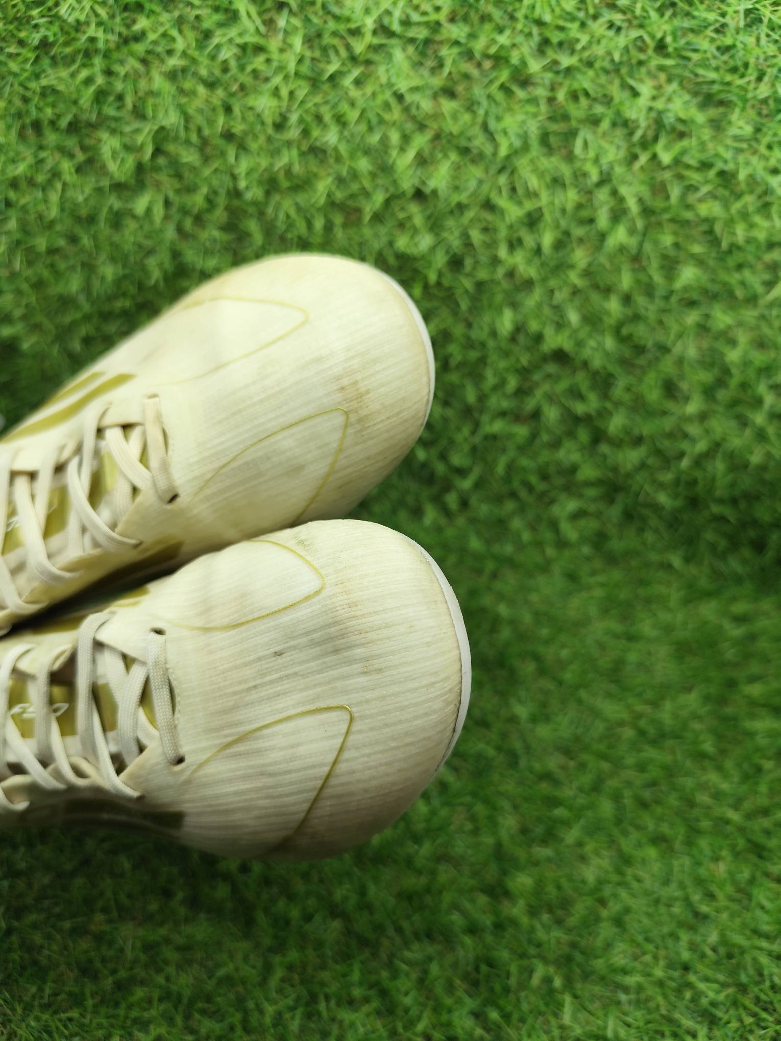 Buty używane, z widocznymi śladami gry (przetarcia, możliwy brak farby w niektórych miejscach). Tam, gdzie było to potrzebne, zostały naprawione, aby zachować pełną funkcjonalność. Nie rozklejają się, nie mają dziur i są w pełni gotowe do gry.