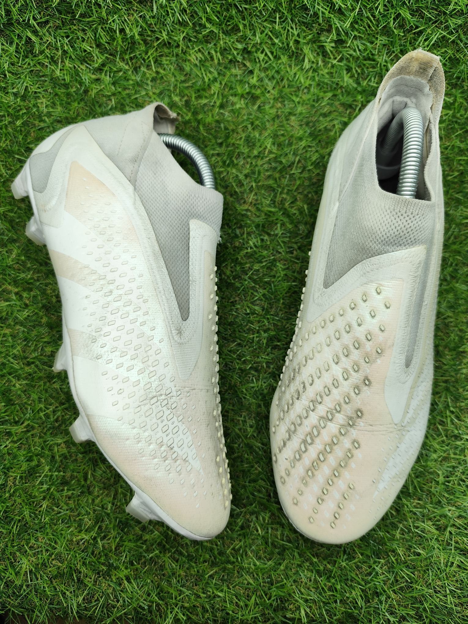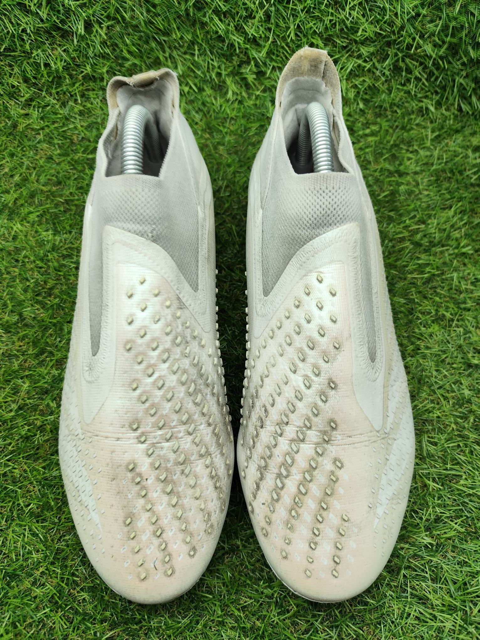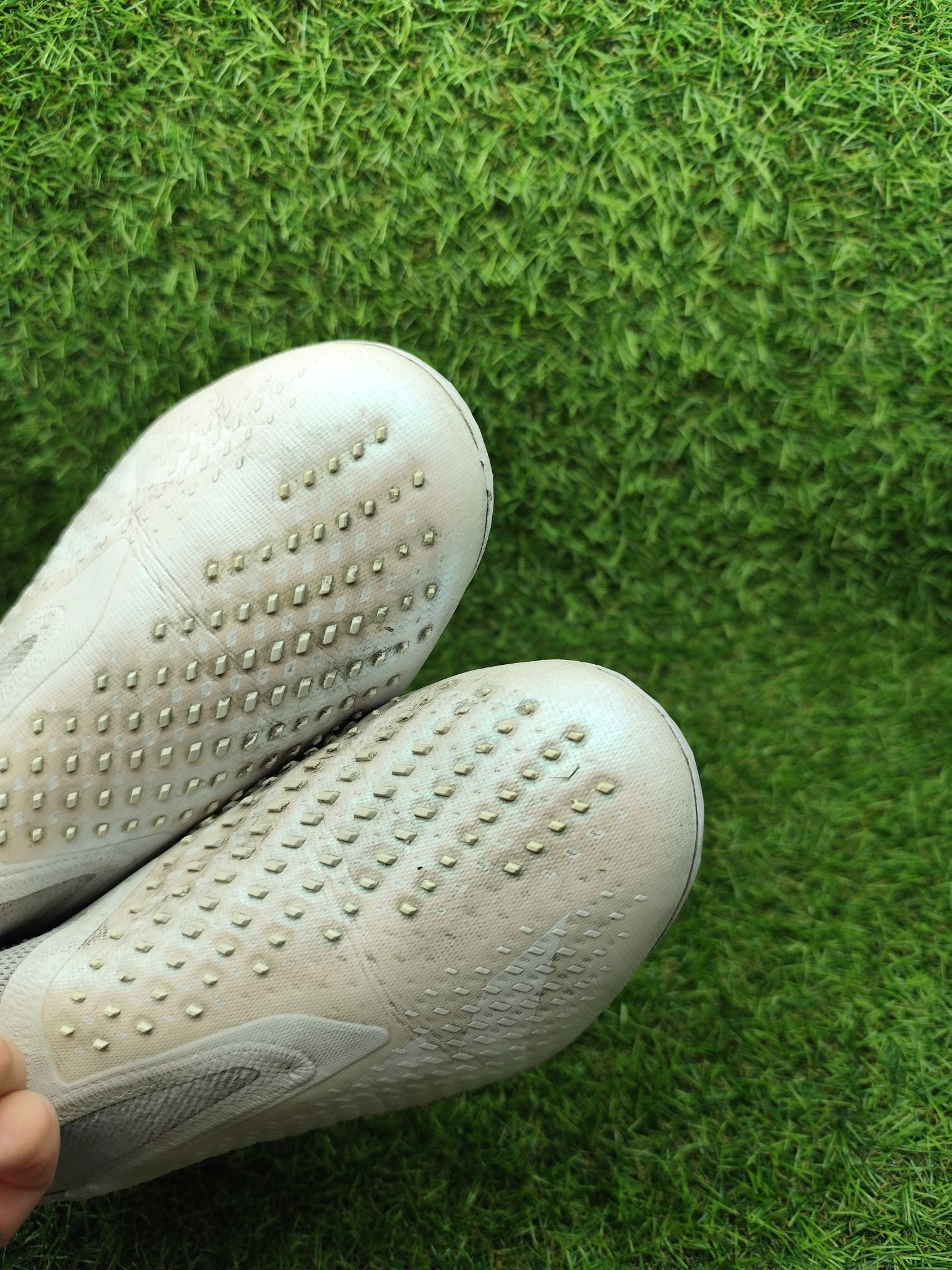 Buty używane w dobrym stanie, bez napraw, w pełni sprawne. Mogą występować lekkie ślady użytkowania typowe dla obuwia piłkarskiego, ale nie posiadają dziur, uszkodzeń ani rozklejeń.