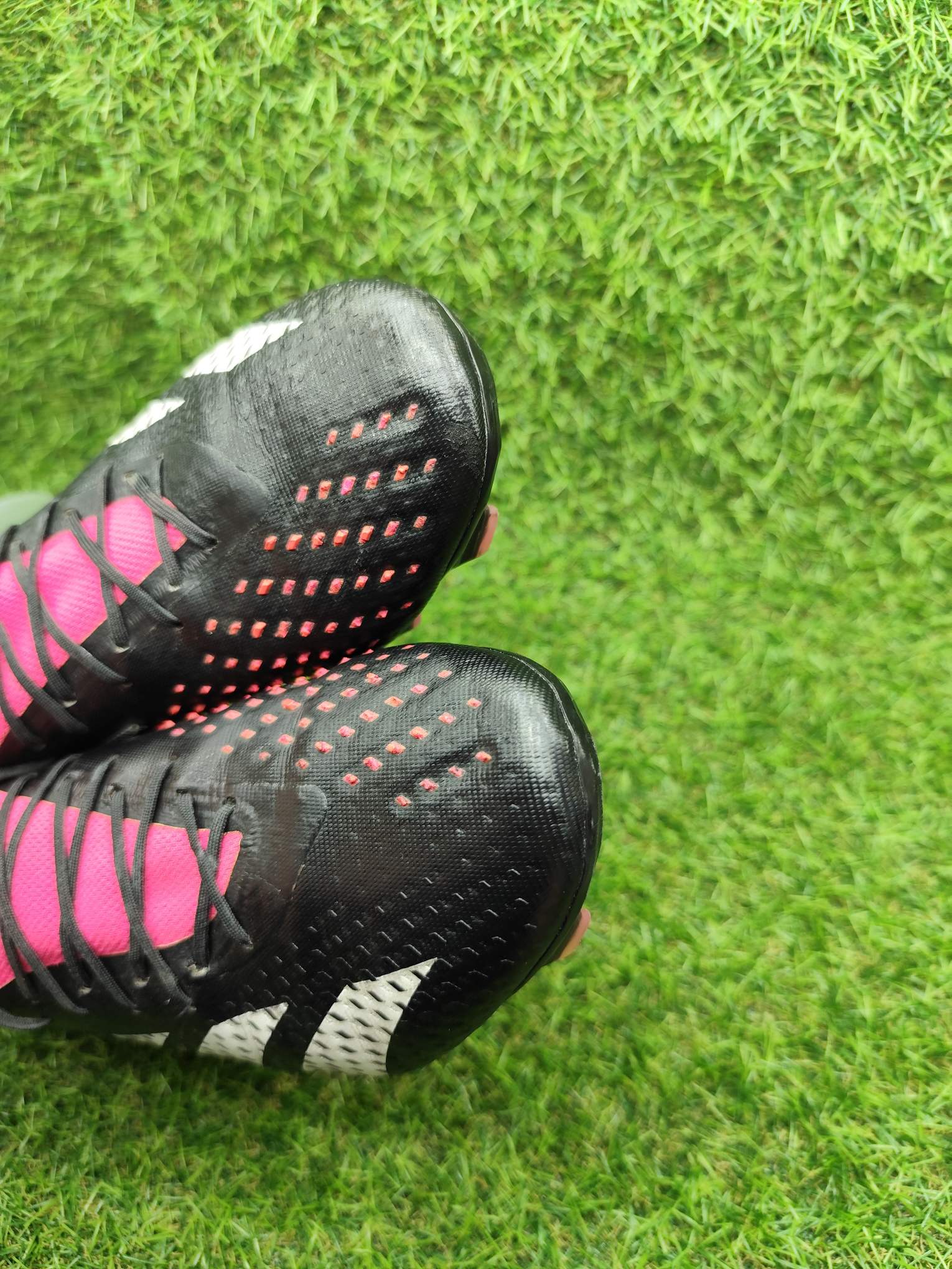 Buty używane w dobrym stanie, bez napraw, w pełni sprawne. Mogą występować lekkie ślady użytkowania typowe dla obuwia piłkarskiego, ale nie posiadają dziur, uszkodzeń ani rozklejeń.