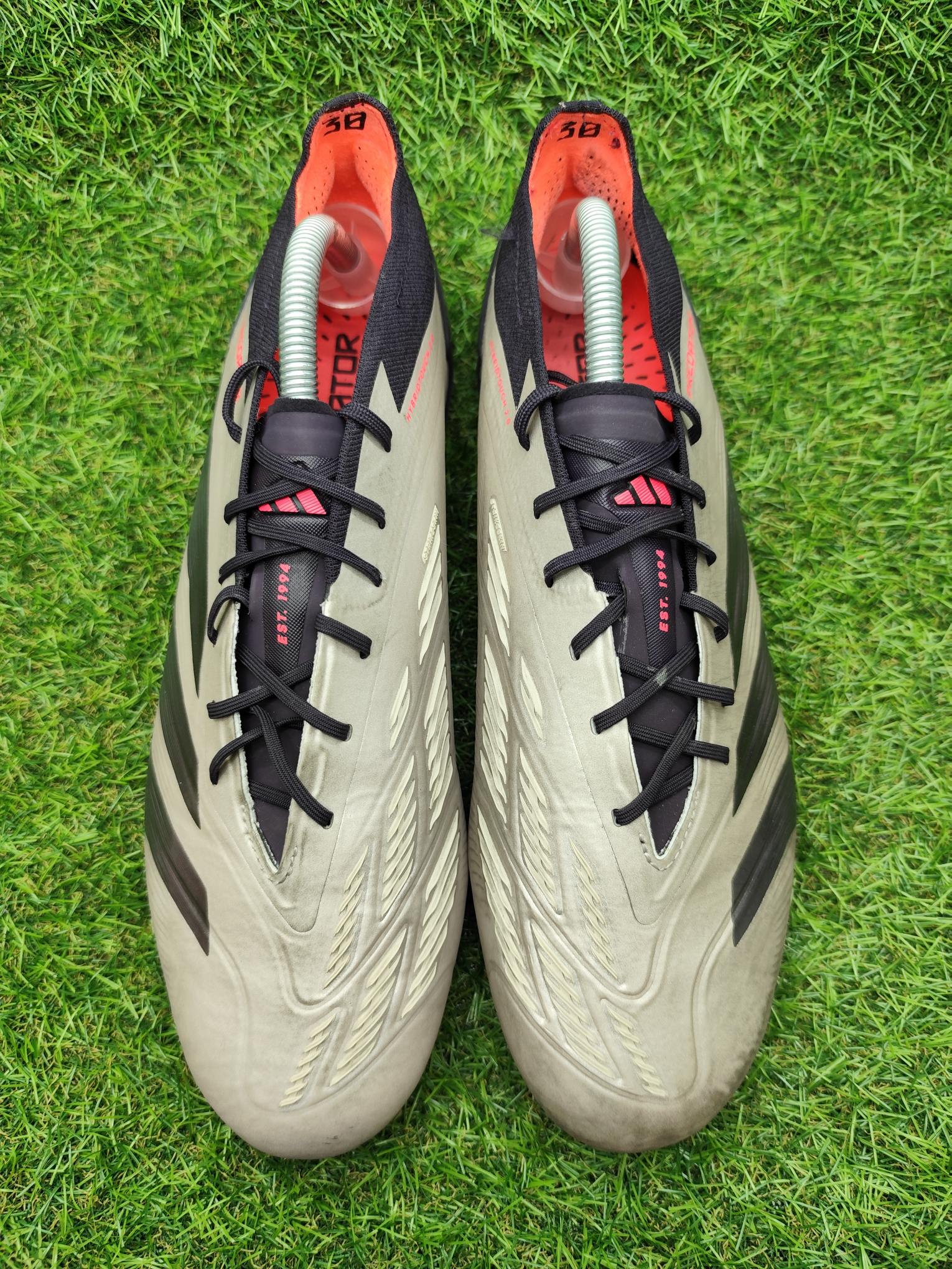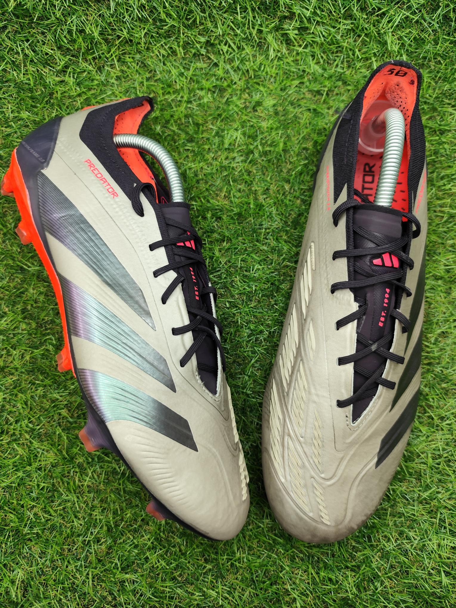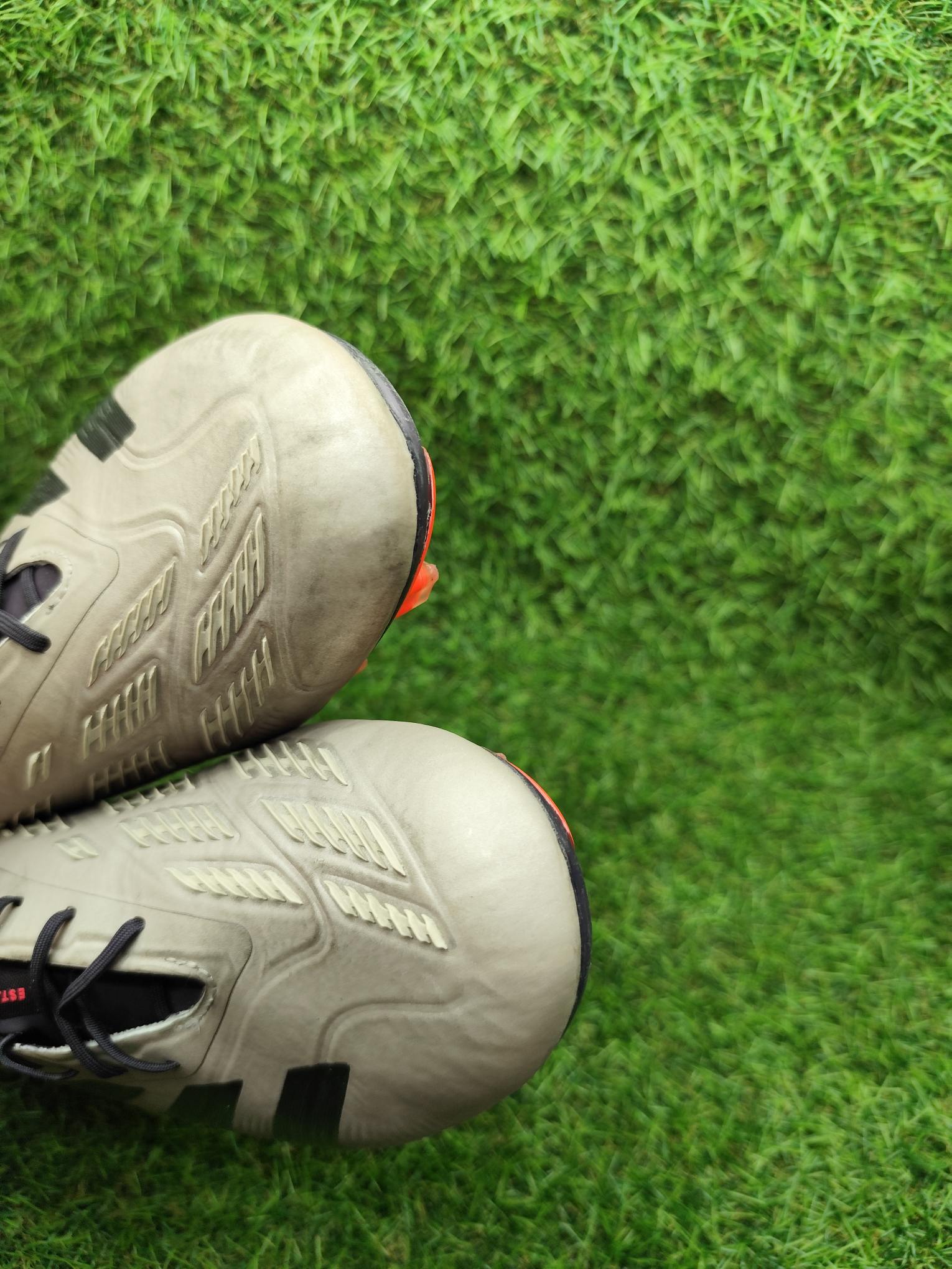 Buty używane w dobrym stanie, minimalnie naprawiane, w pełni sprawne. Mogą występować lekkie ślady użytkowania typowe dla obuwia piłkarskiego, ale nie posiadają dziur, uszkodzeń ani rozklejeń.