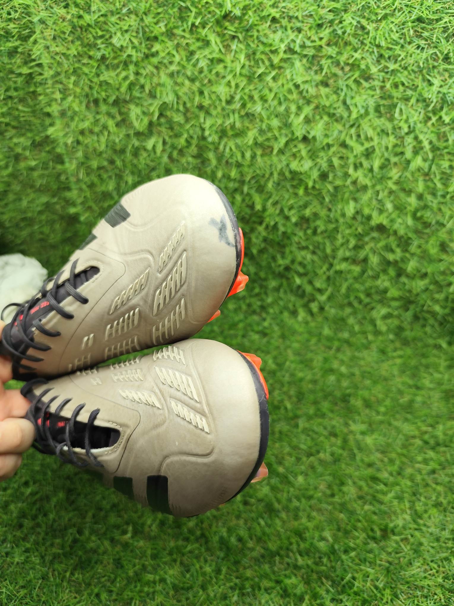 Buty używane w dobrym stanie, minimalnie naprawiane, w pełni sprawne. Mogą występować lekkie ślady użytkowania typowe dla obuwia piłkarskiego, ale nie posiadają dziur, uszkodzeń ani rozklejeń.