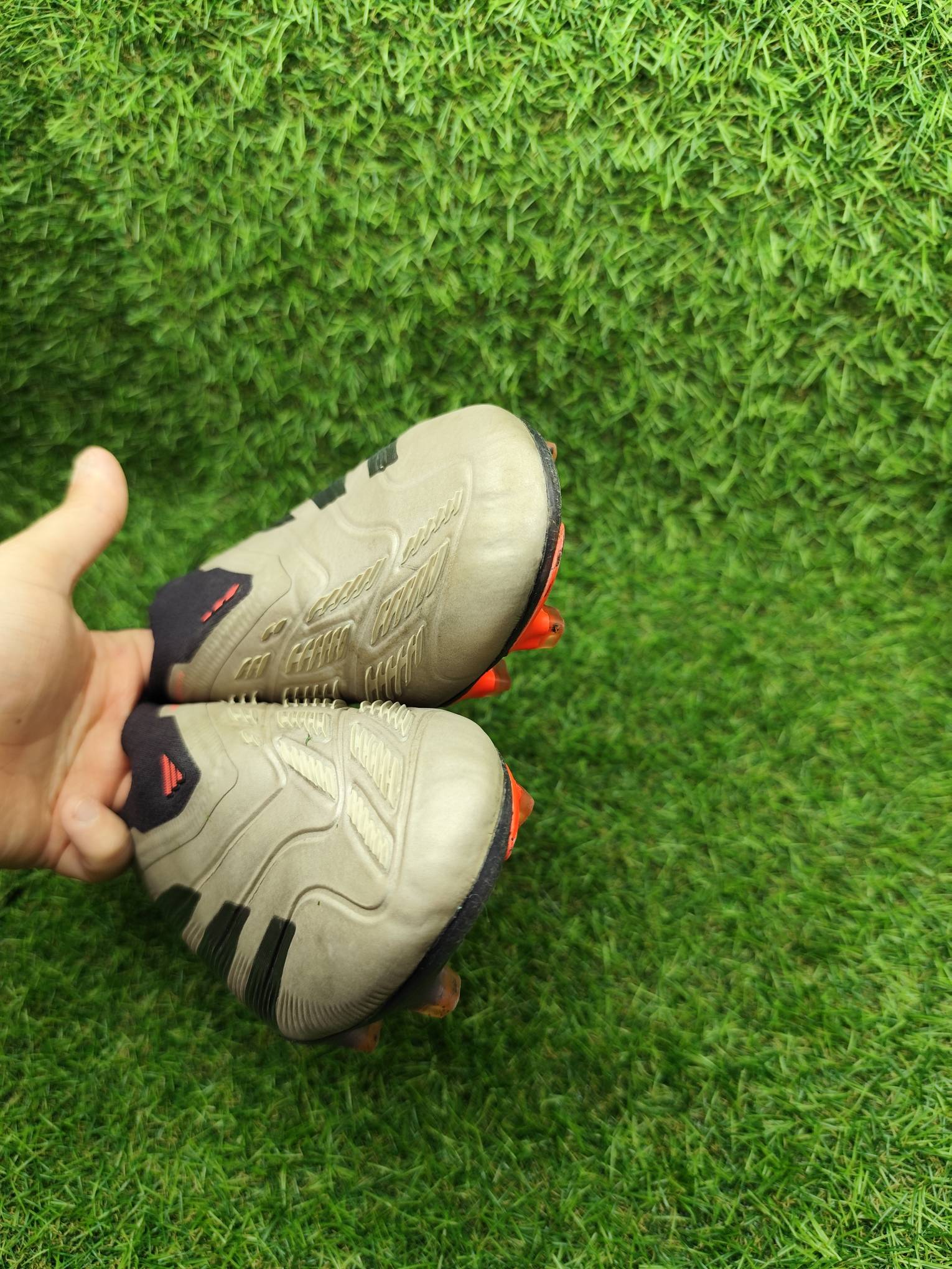 Buty używane w dobrym stanie, bez napraw, w pełni sprawne. Mogą występować lekkie ślady użytkowania typowe dla obuwia piłkarskiego, ale nie posiadają dziur, uszkodzeń ani rozklejeń.