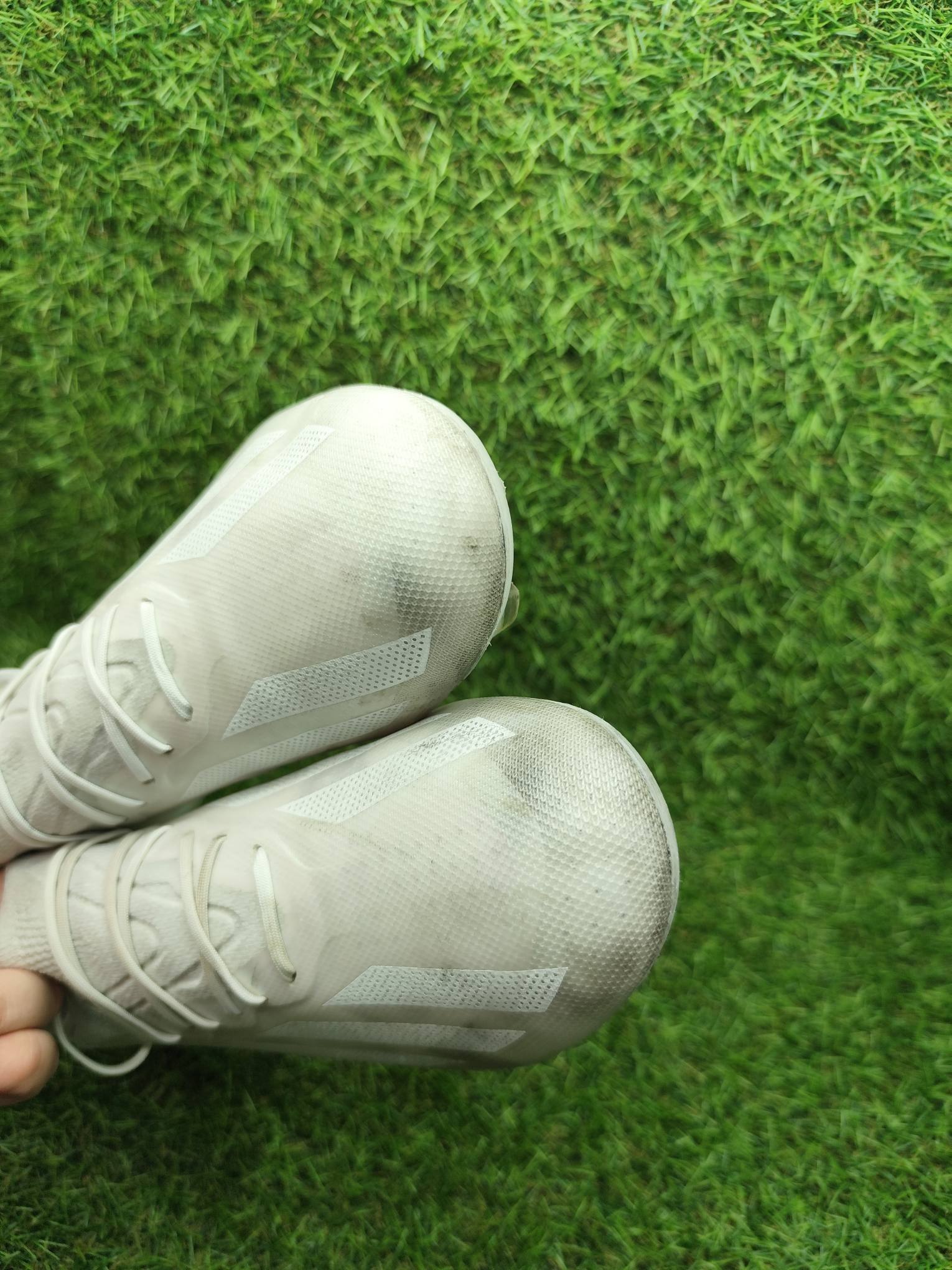 Buty używane w dobrym stanie, naprawiane, w pełni sprawne. Mogą występować lekkie ślady użytkowania typowe dla obuwia piłkarskiego, ale nie posiadają dziur, uszkodzeń ani rozklejeń.