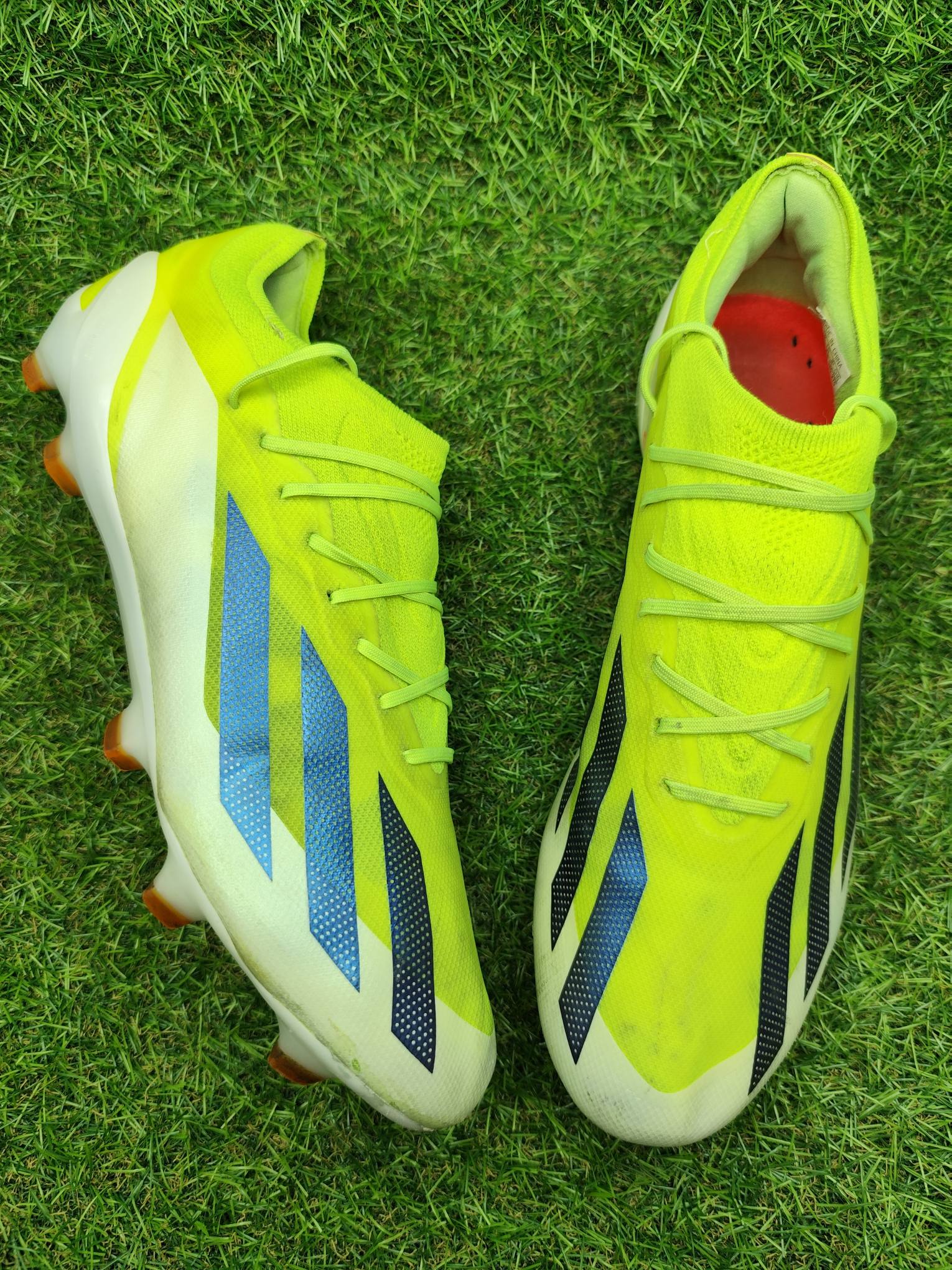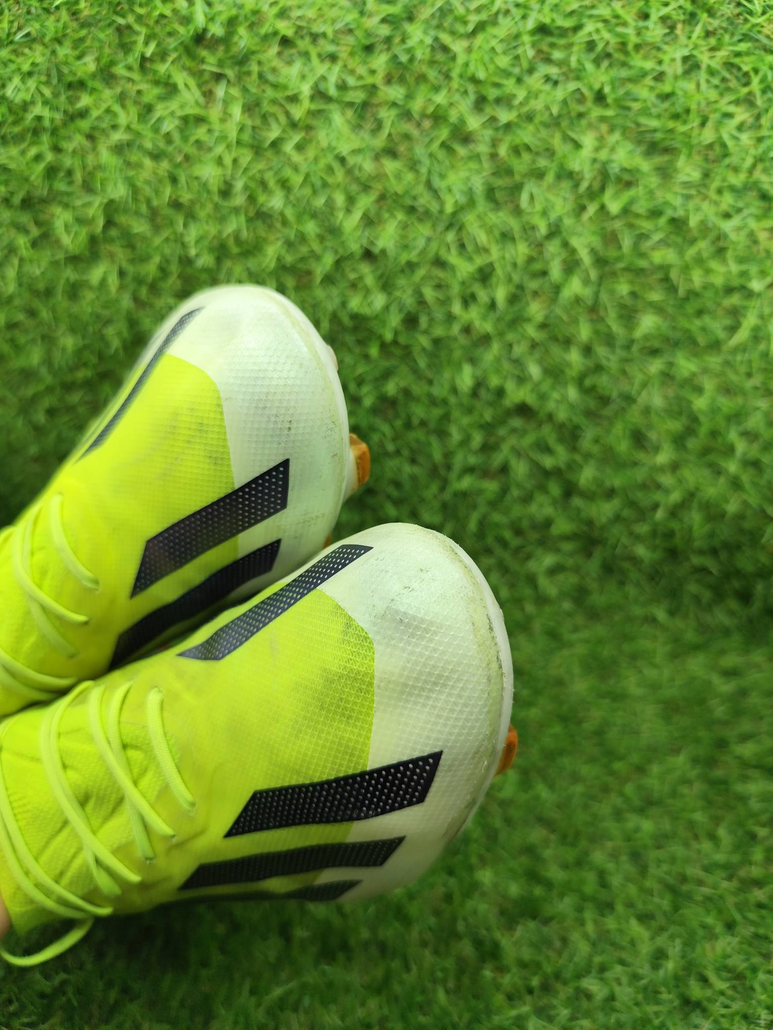 Buty używane w dobrym stanie, naprawiane, w pełni sprawne. Mogą występować lekkie ślady użytkowania typowe dla obuwia piłkarskiego, ale nie posiadają dziur, uszkodzeń ani rozklejeń.