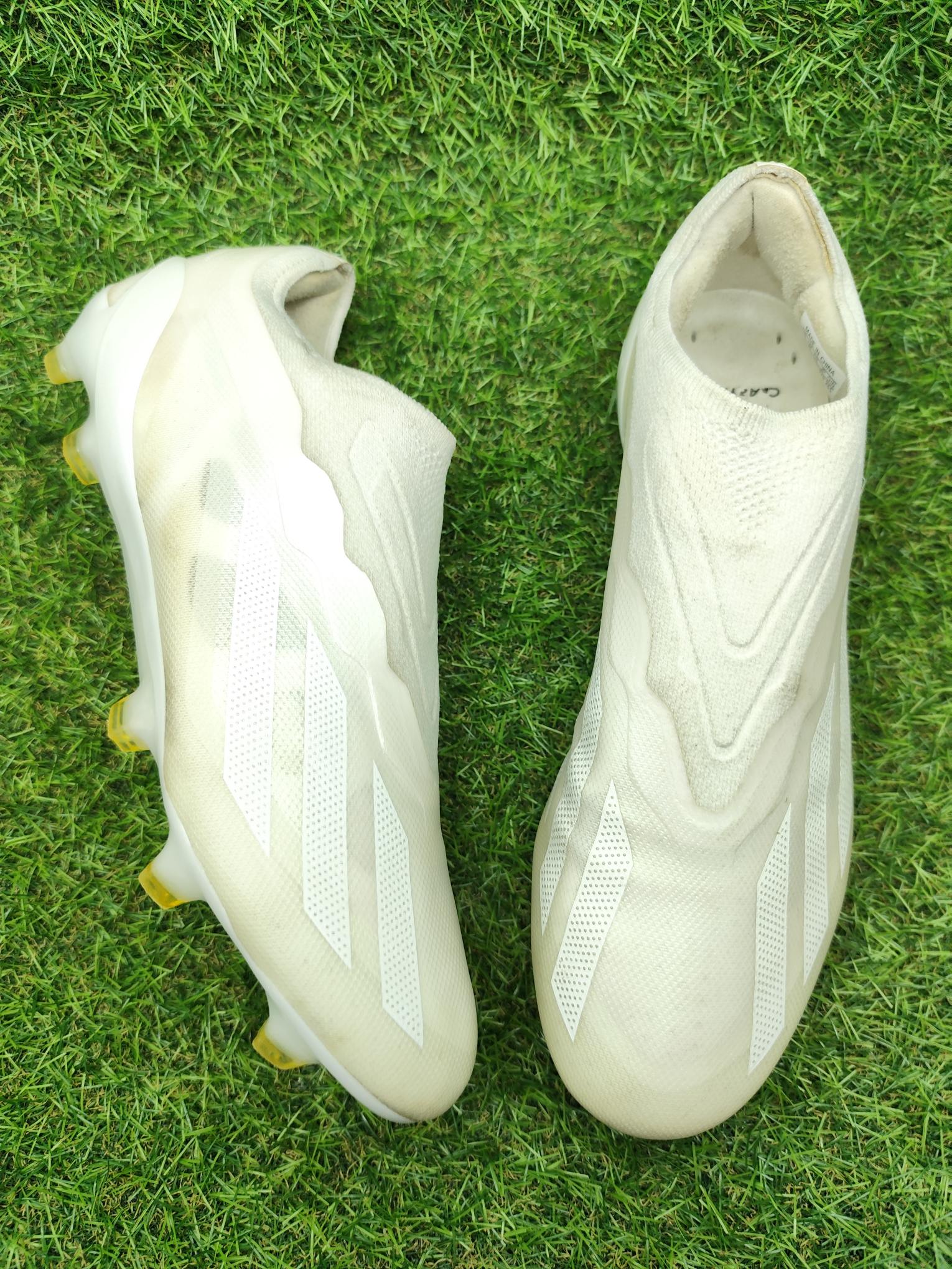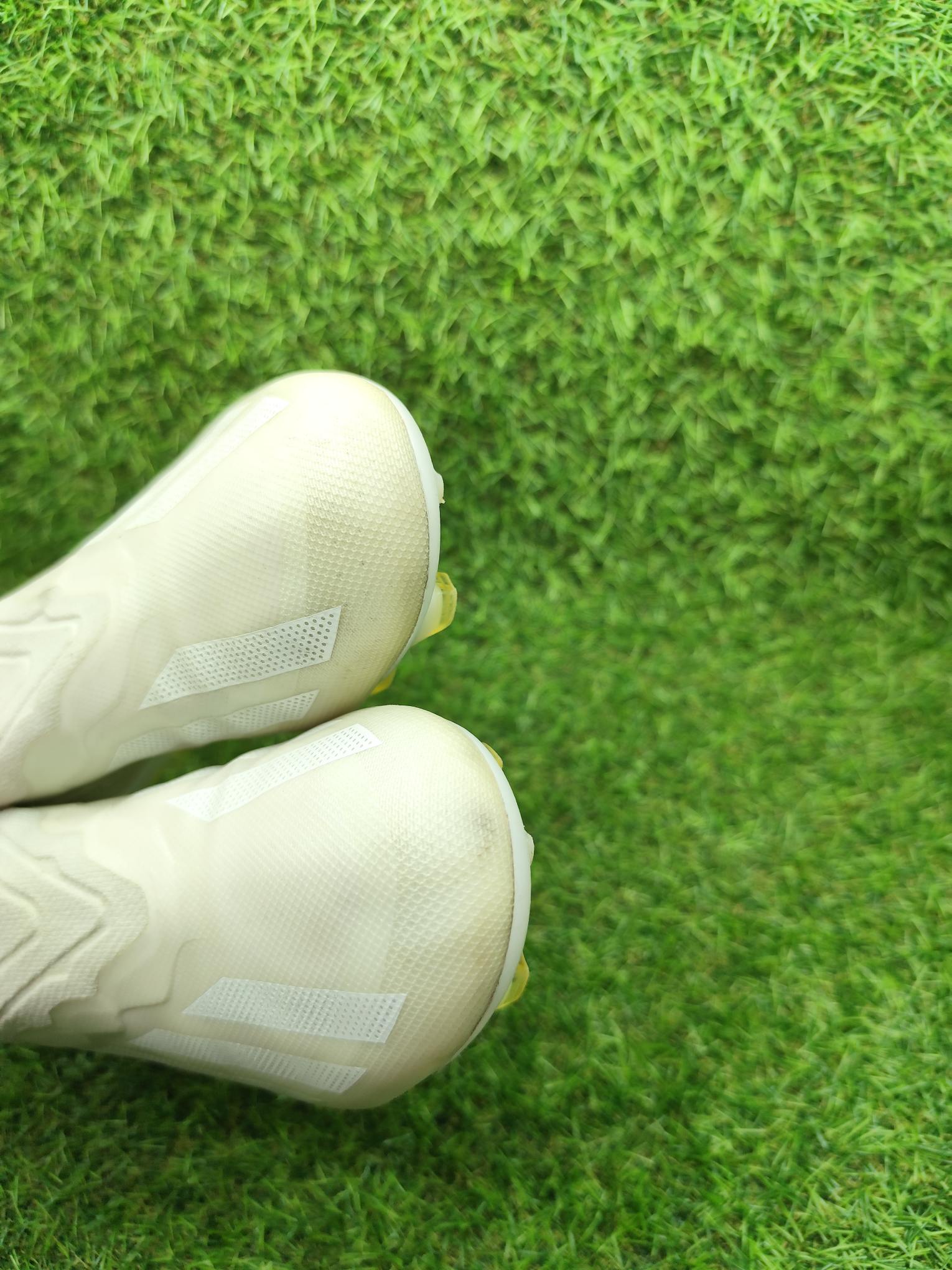 Buty używane w dobrym stanie, bez napraw, w pełni sprawne. Mogą występować lekkie ślady użytkowania typowe dla obuwia piłkarskiego, ale nie posiadają dziur, uszkodzeń ani rozklejeń.
