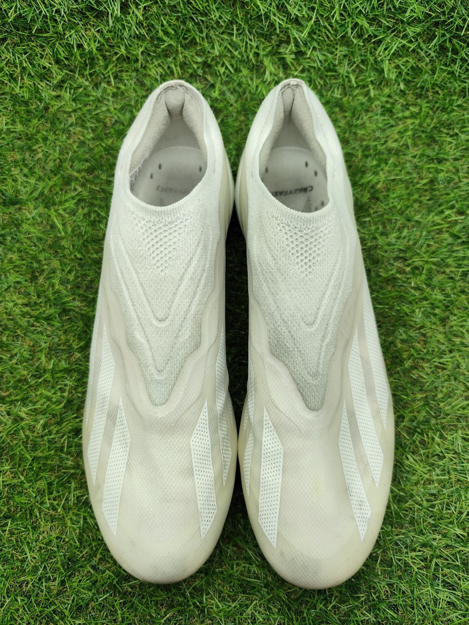 Buty używane w dobrym stanie, naprawiane, w pełni sprawne. Mogą występować lekkie ślady użytkowania typowe dla obuwia piłkarskiego, ale nie posiadają dziur, uszkodzeń ani rozklejeń.