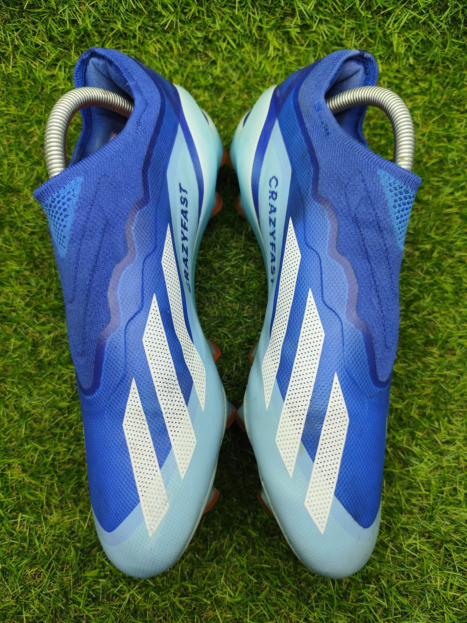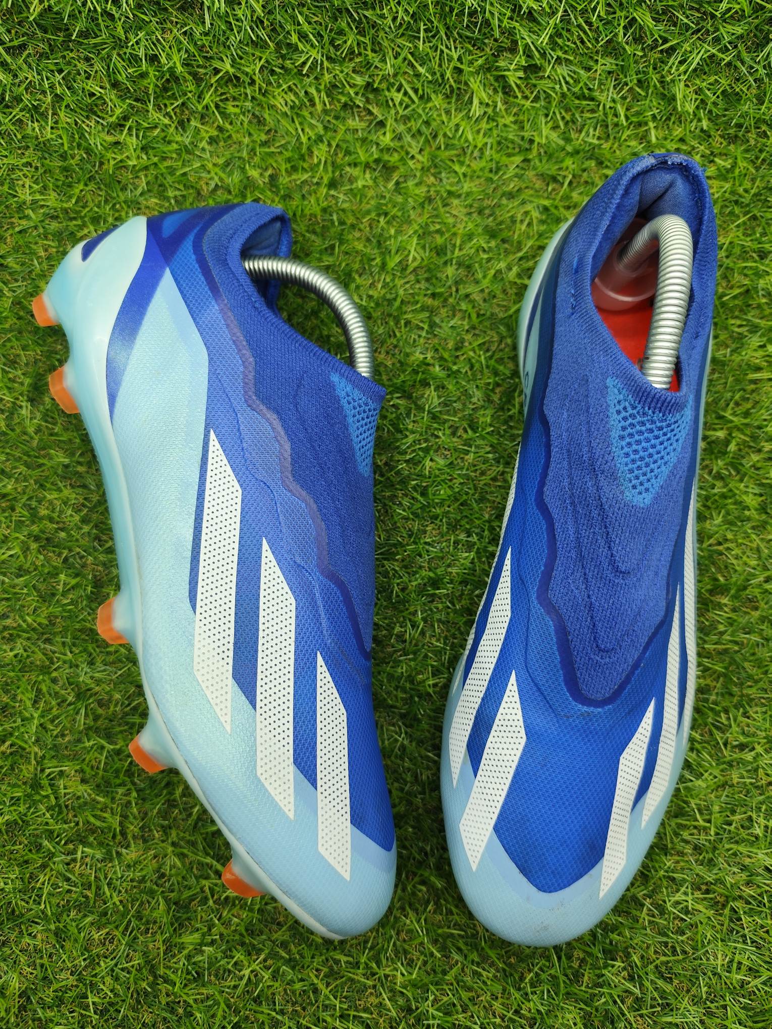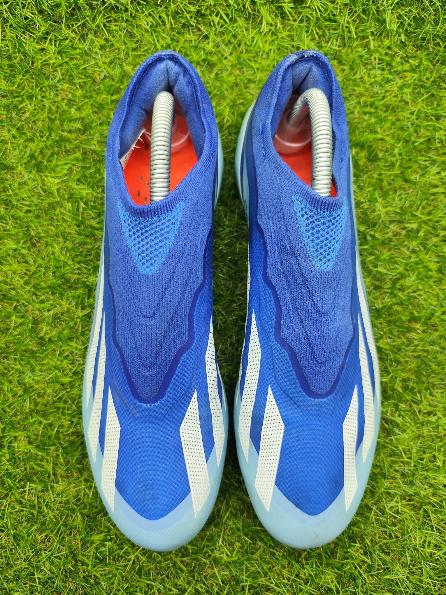 Buty używane w dobrym stanie, bez napraw, w pełni sprawne. Mogą występować lekkie ślady użytkowania typowe dla obuwia piłkarskiego, ale nie posiadają dziur, uszkodzeń ani rozklejeń.